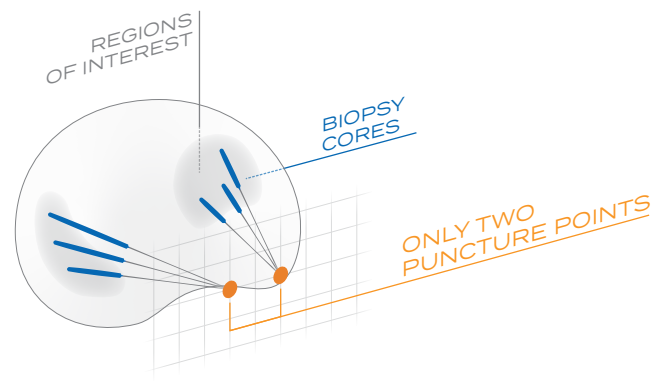 MRI와 실시간 초음파 영상을 융합하여 3D 시각화 영상을 생성할 수 있는 장비로 전립선 조직 검사 시 로봇을 활용하여 정확하게 병변 의심 부위를 타겟해서 전립선암 발견율을 높일 수 있습니다.